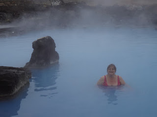 Sedan var det dags att bada i Jardbödin vid Myvatn. Här är Rolf i den heta lilla bassängen.