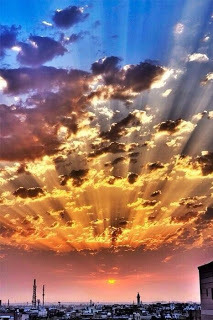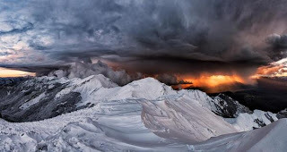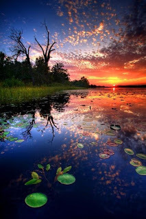 Vid solnedgång kan flera olika ljusfenomen, som exempelvis aftonrodnad, gröna blixten och alpglöd, uppstå. Hämtat från Wikipedia .