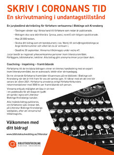 De tre vinnande författarna framträder tillsammans på tre bibliotek i Blekinge och Kronoberg när det är fritt fram för oss att samlas igen. Vi räknar med att det inte blir senare än våren 2021.