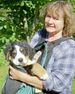 Trots att jag har många hundar, vill jag ägna lika mycket tid åt valpen, som får följa med i ryggsäck på skogspromenaderna.