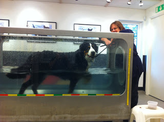 För tre år sedan slet Tola av sig korsbandet i sitt vänstra bakben. Hon opererades och fick gå på Rehab på Växjö djursjukhus. I september slet hon av korsbandet på sitt friska högra bakben. Vi bestämde att vi inte ville operera, eftersom Tola var drygt 9 år. Istället fick hon knäskydd på båda benen och började på Rehab igen. Vilket gick jättebra och hon gick till slut helt normalt på det senast skadade benet.