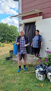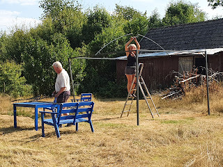 Till hjälp har vi haft Ulrika som är den perfekta arbetsledaren. När tälten sattes upp hade vi även hjälp av våra tyska grannar. Nu fick jag jobba för de båda. Men Jan var i lite bättre skick än när tälten sattes upp och kunde hjälpa till en hel del.