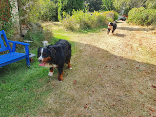 Ulrika hade sina egna hjälpredor med sig, sina två stora Berner Sennenhanar M&M. Tänk att jag som mest har haft SJU stycken berner... Nu tycker jag att de är gigantiska.