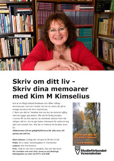 I kursen ingår Kim M. Kimselius handbok om att skriva memoarer, "Skriv om ditt liv" fika och lätt lunch. Är du allergiker meddela det vid anmälan.