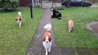 Det blev även ett besök hos Karina. På bilden är det Rambo längst fram, Kotten till vänster, Soya till höger och Kiara som sitter och kliar sig i bakgrunden.