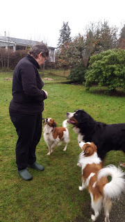Godisutdelning till alla lydiga hundar. Här är det Karina som sköter godiset.