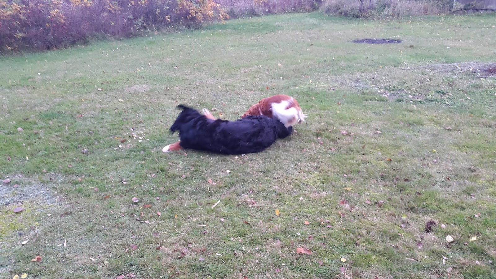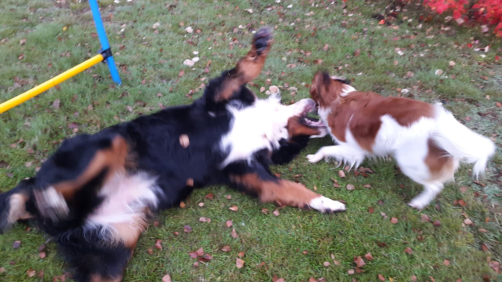 Full fart på hundarna. Det är så härligt att se två kooikerhanar leka på det här sättet.