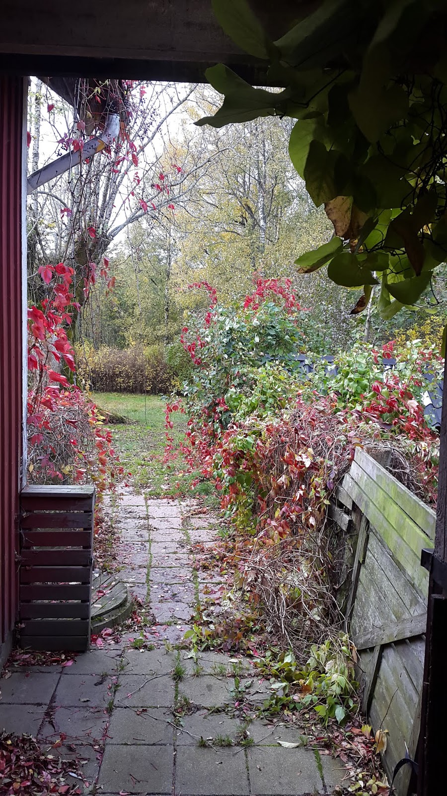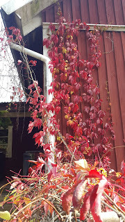Därefter åkte vi till Lenas hus en allra sista gång, dagen innan hon skulle lämna över nycklarna till huset. Jag har alltid älskat att komma till Lena under hösten, med all denna sprakande färgprakt som vildvinen bjuder på.