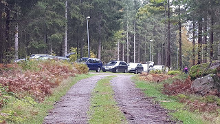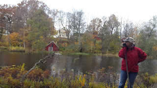 Nu i jakttider känns det osäkert att gå omkring i skogarna hemmavid, så vi tar bilen till Karlsnäs och promenerar i motionsslingorna där.