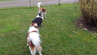 Karina och jag var på utflykt till Tingsryd på fredagen, sedan hämtade vi upp mina hundar och körde hem till henne för ett lekpass. Hundarna älskar att vara tillsammans. En fin flock. Här är det Kotten, Bea (17 år) och Rambo (7 år).