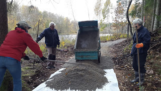 På lördagen var vi till Färgargården och hjälpte till med motionsslingan runt Togölen. Om två veckor är det dags för Skrivarkurs och då kommer rundan att vara såpass klar att man kan gå runt den.