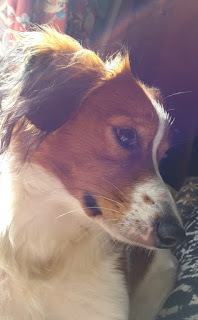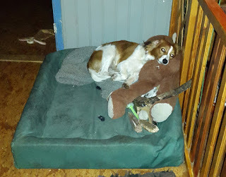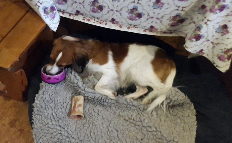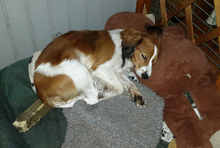 Kooikerhunden Kottens första besök i skrivarstugan .