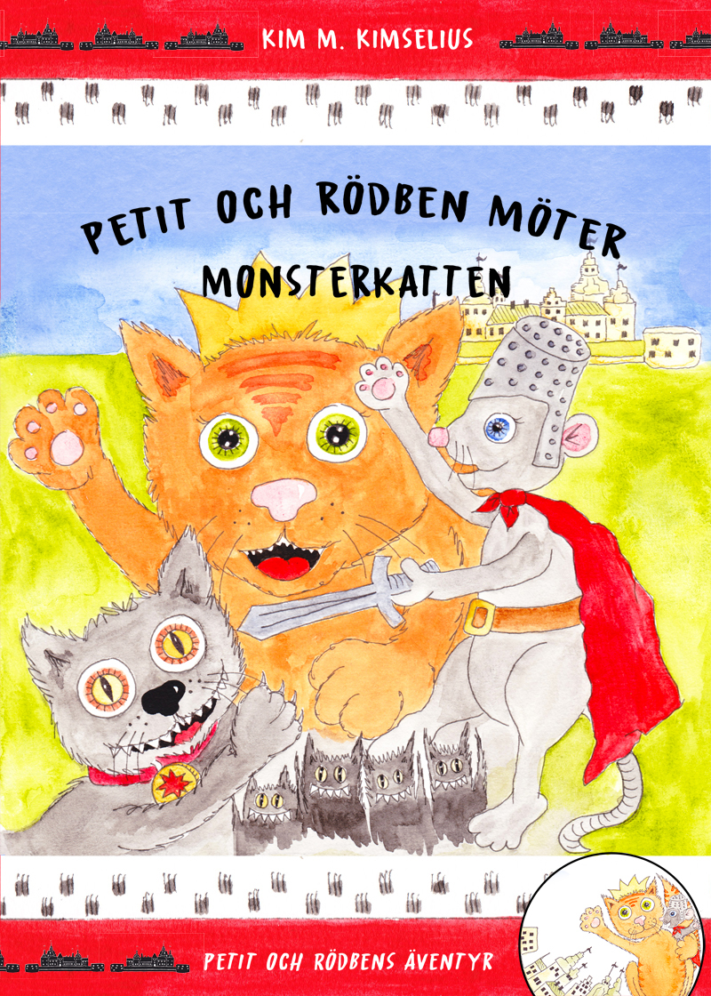 Baksidestext Slottsmusen Petit och Spökkatten Rödben på Kalmar slott: Den minsta lilla musen på Kalmar slott har en stor dröm. Han vill bli riddare. En dag smyger Petit ut ur slottet för att vara med vid ett riddarspel. Det går inte riktigt som han har tänkt sig. På vägen tillbaka möter han spökkatten Rödben. Ett möte som förändrar slottsmusen Petits liv. Detta är första delen i serien Petit och Rödbens äventyr. Kim M. Kimselius har under drygt 22 år fångat läsare i alla åldrar med sina fristående historiska äventyrsböcker om Theo och Ramona. 2019 har Kim gett ut närmare 60 böcker. Kimselius debutbok, Tillbaka till Pompeji, har översatts till många språk och blev utsedd som en av årets bästa böcker på Island 2009.