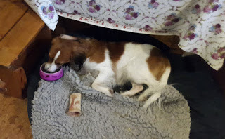 Onsdagen var också en skrivdag. Mängder av ord fyllde datorskärmen och med ens var boken klar. När den kommer ut vet jag inte riktigt, men det känns skönt att ha skrivit klart den. Nu ska den korrekturläsas och ligga till sig ett tag innan den läses igen. På kvällen var det kurs för Kotten. Då hade jag så vansinnigt ont i ena foten att jag knappt kunde gå. Det innebar att Kotten och jag bara kunde vara med en halvtimma och göra två sökmoment, sedan satt jag på en bänk med foten i högläge och tittade på.