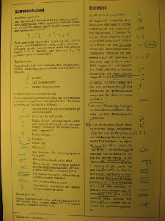 (Bilden visar på olika korrekturtecken och deras betydelse.)