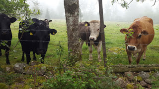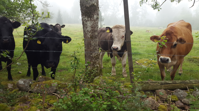 Men Kotten skulle fram och nosa. Han tyckte bäst om den brunvita kon, men där fick jag inget lyckat foto. Han var ända fram och mötte kon nos mot nos.