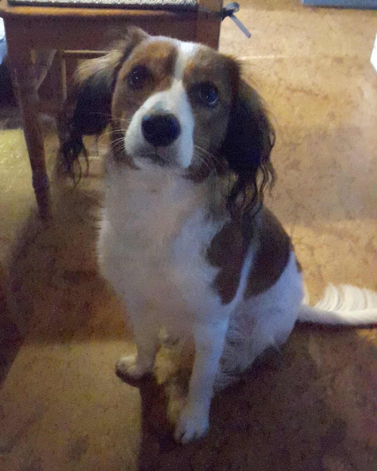 Kooikerhunden Kottens första besök i skrivarstugan .
