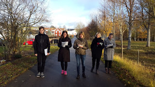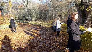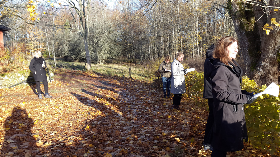 Om vi har lika stor tur som under förra hösten blir det soligt, varmt och skönt. Vi hade så vackert väder förra året att jag bestämde mig för att vi skulle hålla delar av kursen utomhus. Medan vi vandrade runt i byn höll jag kurs. Deltagarna fick skrivuppgifter, därav papper och penna.