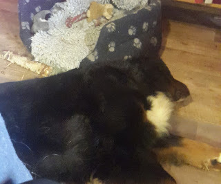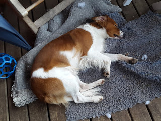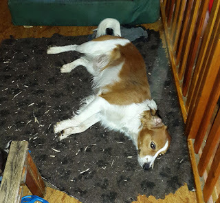 Det var nog tur att Kotten sov så mycket på kvällen, för i natt har det inte blivit mycket sömn. Vi särade på hundarna, vilket resulterade i två pipande, ylande hundar under natten. Nu är även vi människor lite trötta.
