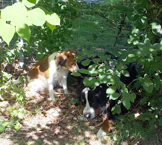 Det har varit en ovanligt varm vecka, med närmare 30 grader. Kiara var i höglöp och Kotten satt en hel kväll på brukshundsklubben och ylade. Sedan pep han hela vägen hem och blev tyst först när han hade träffat Kiara och pussat på henne. Sedan låg de sida vid sida.