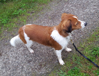 Vi har även varit och hälsat på Smilla och varit på hundkursen. Dag två på kursen (inte den kväll han ylade hela tiden) skötte sig Kotten alldeles utmärkt. Vi har fått nya uppgifter att öva på. Det går rätt bra, även om vi ligger lite efter i träningen på grund av höglöpet.