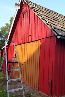 Och nog blev det fint, eller hur. Bara en strykning på bilderna, nu har jag målat allt rött två gånger, ända tills färgen tog slut. I veckan får jag köpa mer färg.