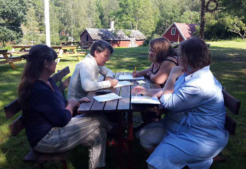 "Återigen har jag fått uppleva en härlig helg på Färgargården i Eringsboda. I en underbar miljö har jag fått möta fantastiska människor som har samma kärlek till ord och berättelser som jag. Det har varit inspirerande och lärorikt. Att få Kims vägledning och stöttning känns tryggt." Marie Robé