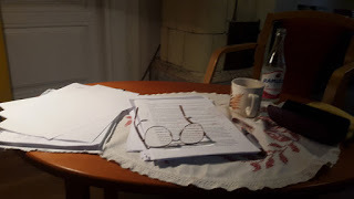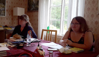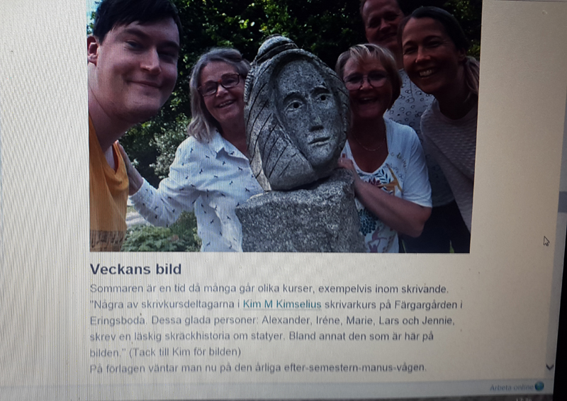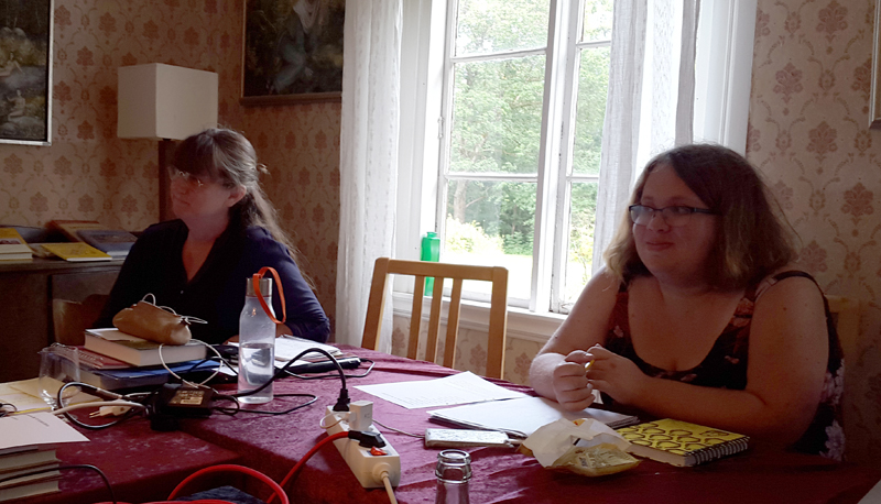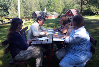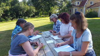 På fredagen startade kursen. Deltagarna delades upp i två grupper och skickade ut i omgivningarna för att hämta inspiration. Jag satt och läste deras medhavda manus och njöt av alla orden.
