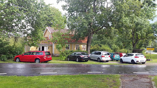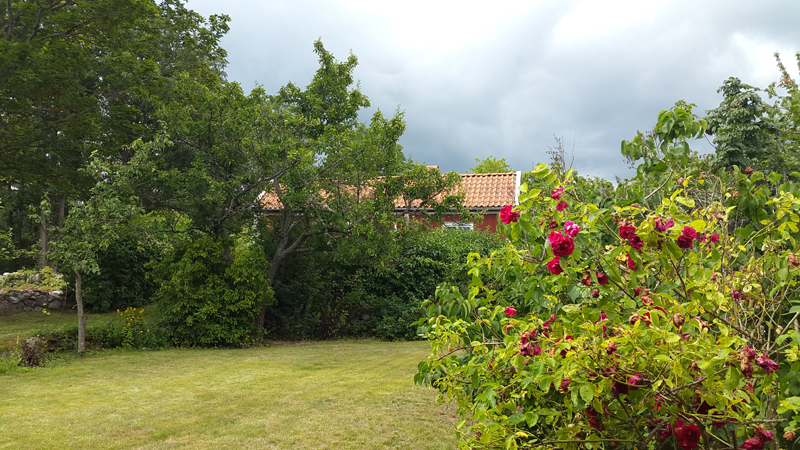 När regnet upphört gick jag ut för att se efter om några bilar blivit skadade av de stora hagelkornen. Allt såg nytvättat ut och solen sken strax på Färgargården igen.