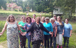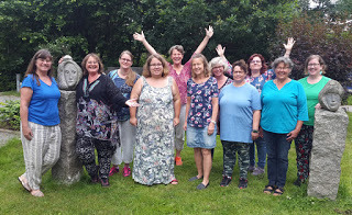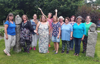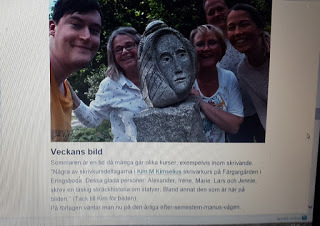 är slut på Färgargården. Som vanligt skulle vi ta den obligatoriska gruppbilden. Den här gången tog vi flera olika motiv. Ovan ser du oss vid skulpturparken utanför Färgargården.