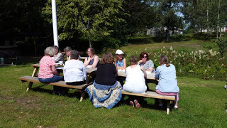 Söndag. Sista dagen på kursen. Solen sken och vi samlades utomhus där det var högläsning av de gemensamma berättelserna.