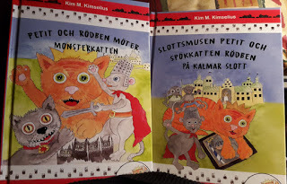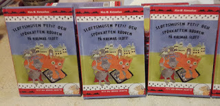 Det känns lite märkligt att ha boksläpp hemma hos mig. Tre helt nya böcker, Pirater och vulkanutbrott på Island, Slottsmusen Petit och spökkatten Rödben på Kalmar slott och Petit och Rödben möter Monsterkatten . Dessutom är det två nya böcker som kom ut i juni: Historiens vingslag runt Färgargården och Staden på andra sidan Pyramiden . Med andra ord fem nya böcker för mina läsare. Lite som på Bokmässan i Göteborg med andra ord. Du har väl inte missat att jag inte kommer till den i år, utan har Öppet Hus istället?