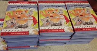 Sedan böckerna skickades iväg till tryckeriet har det varit en nervös väntan. Skulle de hinna tryckas i tid innan Öppet Hus? Jag var sent ute eftersom jag hade skrivit så många böcker som skulle färdigställas samtidigt. Illustrationerna skulle läggas in i båda Petitböckerna innan de kunde gå till tryck.