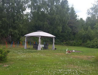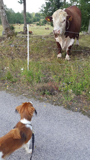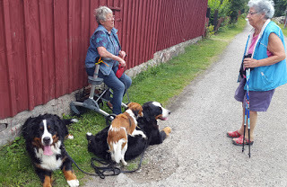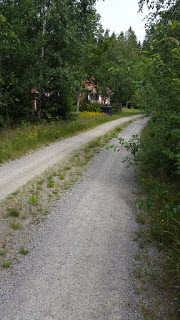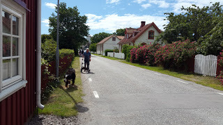 Efter skrivarkursen har maken, hundarna och jag tagit kvällspromenad, även om det varit sent. Det är en stor fördel med sommaren, kvällarna känns oändliga.