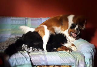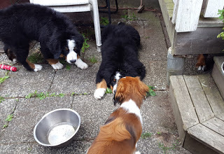 Då har ännu en vecka med Kotten passerat. Han har blivit åtta månader och tar allt större plats i våra hjärtan för varje dag. Mycket har hänt den här veckan. De 14 veckor gamla Berner Sennenvalparna M och M har varit på besök. De var gigantiska jämfört med Kotten. Jag hade börjat tycka att Kotten var stor, men han var bara en liten valp i jämförelse med dem. Men de blev trots allt vänner.
