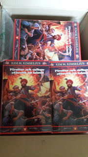 Efter att ha varit rejält sjuk och legat i feber torsdag till söndag kändes ankomsten av Pirater och vulkanutbrott på Island som en rejäl belöning och en vitamininjektion. Så glad över att hålla den här boken i min hand, du anar inte. Snart har jag gett ut 60 böcker och målet 100 böcker känns faktiskt inom räckhåll. Jag skriver på.