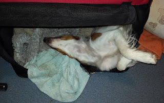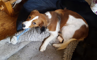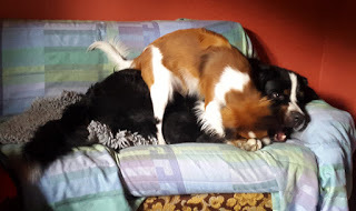 Sedan hittade M och M den absolut bästa platsen i hela hundgården. Kiaras plats. Kotten ser lite förfärat på när de båda valparna kryper in till henne. Något Kotten aldrig har vågat sig på. Kiara orkar inte bry sig, utan kryper ut på andra sidan.