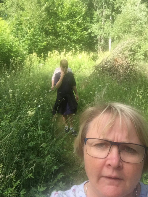 Marie som fotograferar under promenaden ser lite orolig ut, för ett tag trodde de alla att de hade gått vilse.