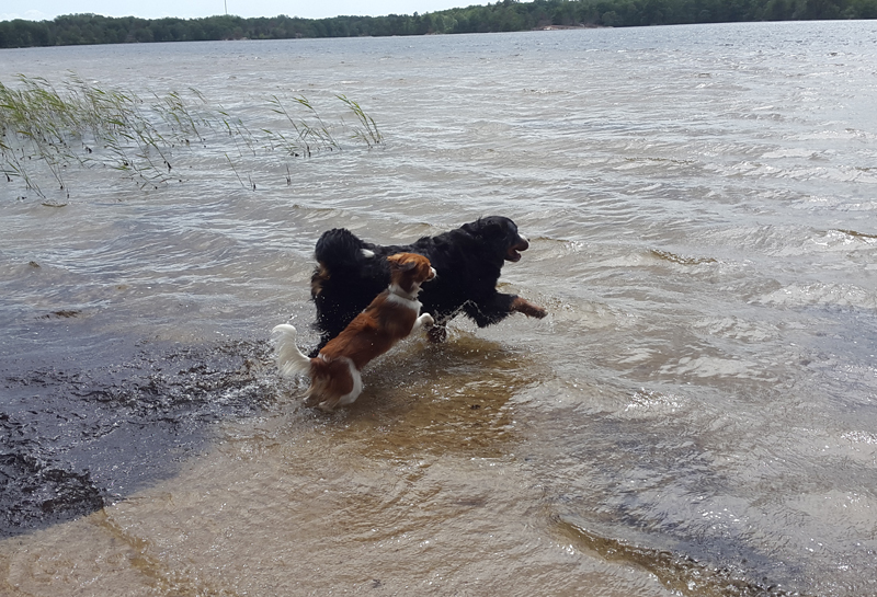 Bernersennenträff och simning för Kooikervalpen Kotten.