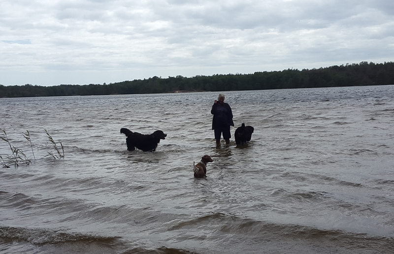 Lena traskade ut i vattnet för att få bra foton på hundarna.