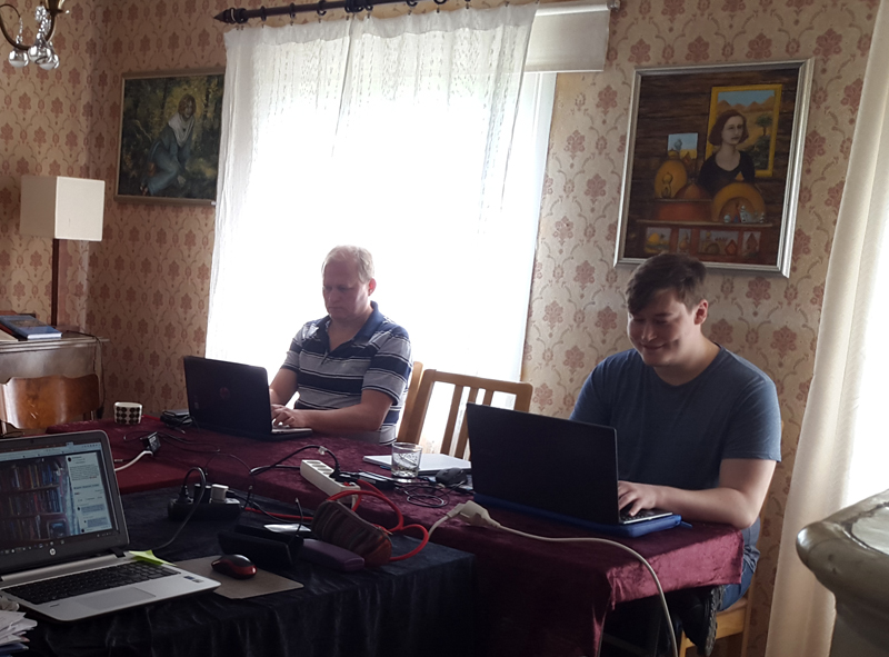 Hustomten Jan var den som stod för maten, såg till att soporna försvann, plockade ur diskmaskinen och hjälpte till på alla sätt och vis. Bland annat är han den som hämtar deltagarna vid flyg och tåg. Han har fullt upp under skrivarkurserna.