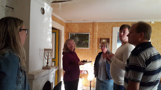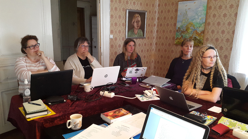 Förra året blev det hastigt bortfall samma dag en av kurserna skulle starta. Magsjukan slog till och det blev bara tre personer på kursen. Eftersom två av dem hade långt att åka och redan hade kört många timmar, bestämde jag mig för att inte ställa in, utan hålla kursen ändå. Det här är tre mycket duktiga författare! Den här gången var Tudor med. Han hade dagen innan gått rakt igenom vår glasdörr i jakt på Kiara som höglöpte. Han behövde komma bort och få vila sig. Jag tror att vi alla tyckte det var lika mysigt att Tudor var med. Kommer att sakna honom i år.