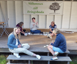 Kan man ha en skrivarkurs på en mer idyllisk plats än Färgargården i Eringsboda? Nedanför gården ligger en liten sjö där kursdeltagarna badar. Vackra omgivningar att promenera i och trevliga invånare i byn. Det kanske inte är underligt att många kommer tillbaka år efter år, efter år.