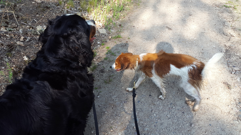 Det var bra passivitetsträning för både Kotten och Kiara och det känns som om de både växte under promenaden. Det var många skällande hundar. Först tyckte Kotten det var otäckt, sedan brydde han sig inte. Det var inte bara hundar i parken, barn som lekte och stojade, folk som promenerade och imponerades av alla hundarna, ja det var full fart.