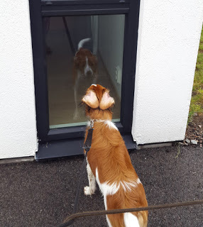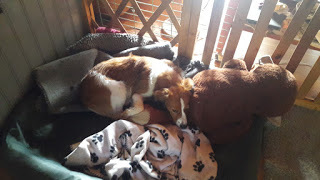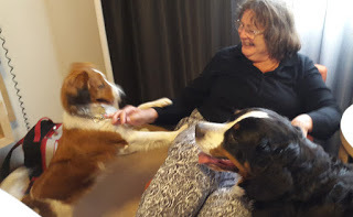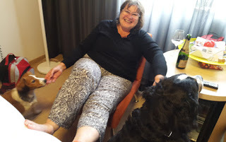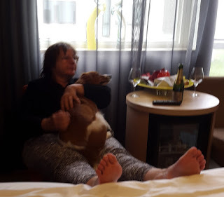 Innan Jan och jag gick ner till spaanläggningen "bodde vi in oss" med hundarna så att de inte skulle känna sig alltför övergivna. Vi drack också ett glas champagne och firade våra 40 år tillsammans.