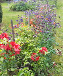 Älskar den här rabatten. Det gör även Kotten för den är full med humlor.