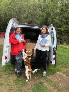 Men det löste sig, Sofie Andersson, med maken Magnus, kom och hämtade alla böckerna. I skolan väntade lärare för att hjälpa dem lasta av. Kotten trodde vi skulle åka iväg, så han såg till att vara med på ett hörn och be om att få följa med.