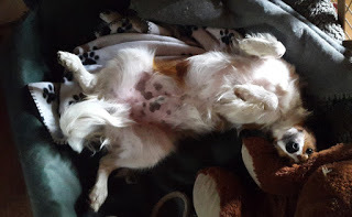 Att vara en liten Kotte kan vara nog så tröttande ibland. Efter sakletarpromenaderna rusar han in och slänger sig i biabädden, oftast på rygg.