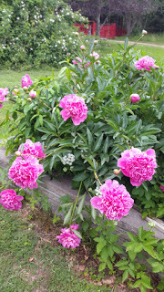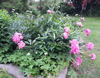 De här pionerna är från min svärfars trädgård. De har följt med oss under alla år när vi har flyttat runt.