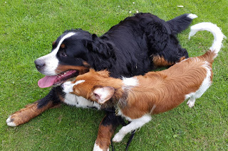 Bernersennenträff och simning för Kooikervalpen Kotten .